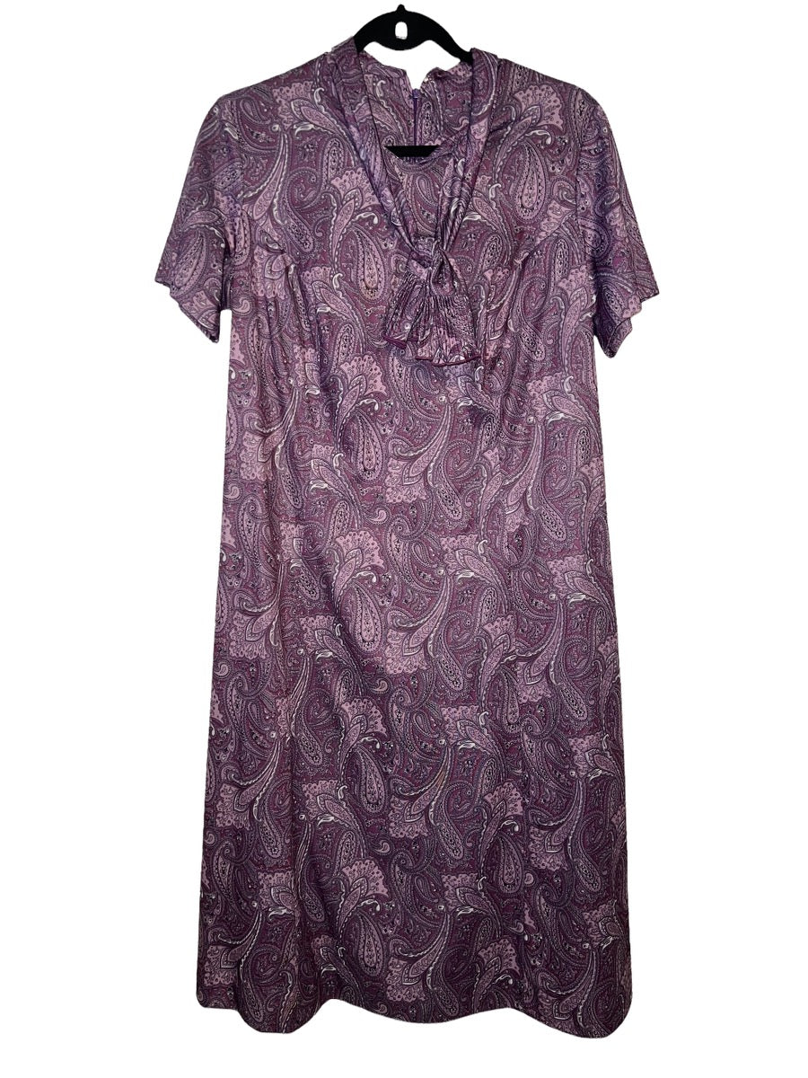 1970's All Over Print Paisley Midi Dress with Attached Scarf
