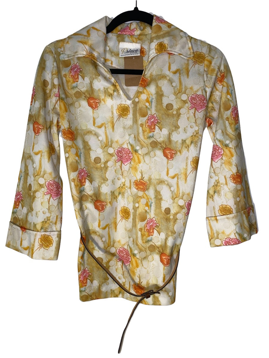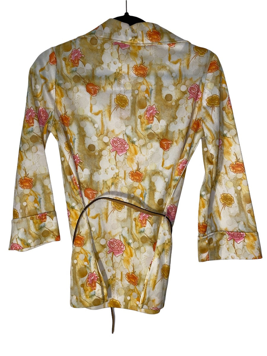 1970s Prince of Dallas Watercolor Flowers V Neck Long Sleeve
