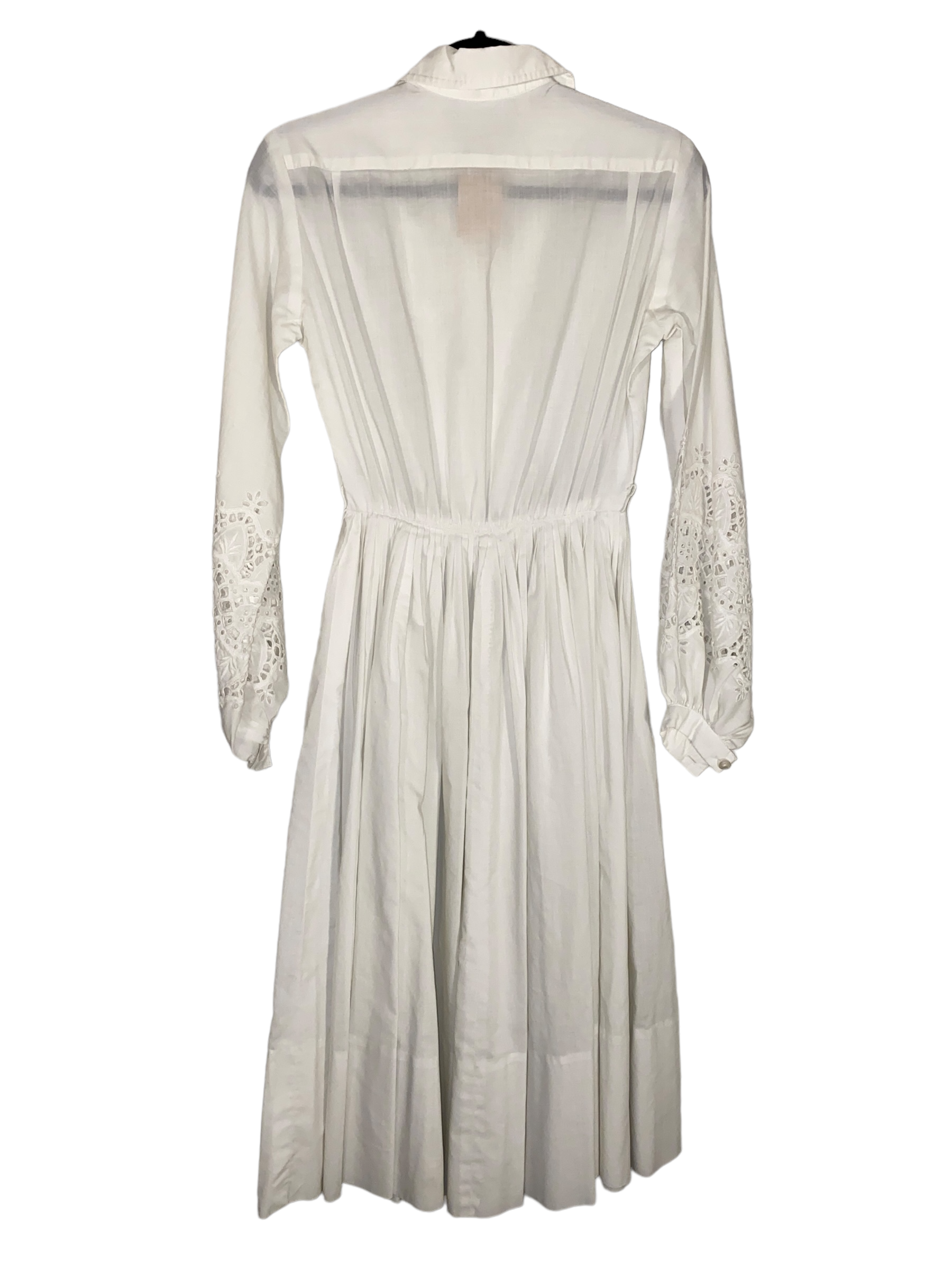 1970s White Dress w Pinhole Lace Bell Sleeves (XXS)