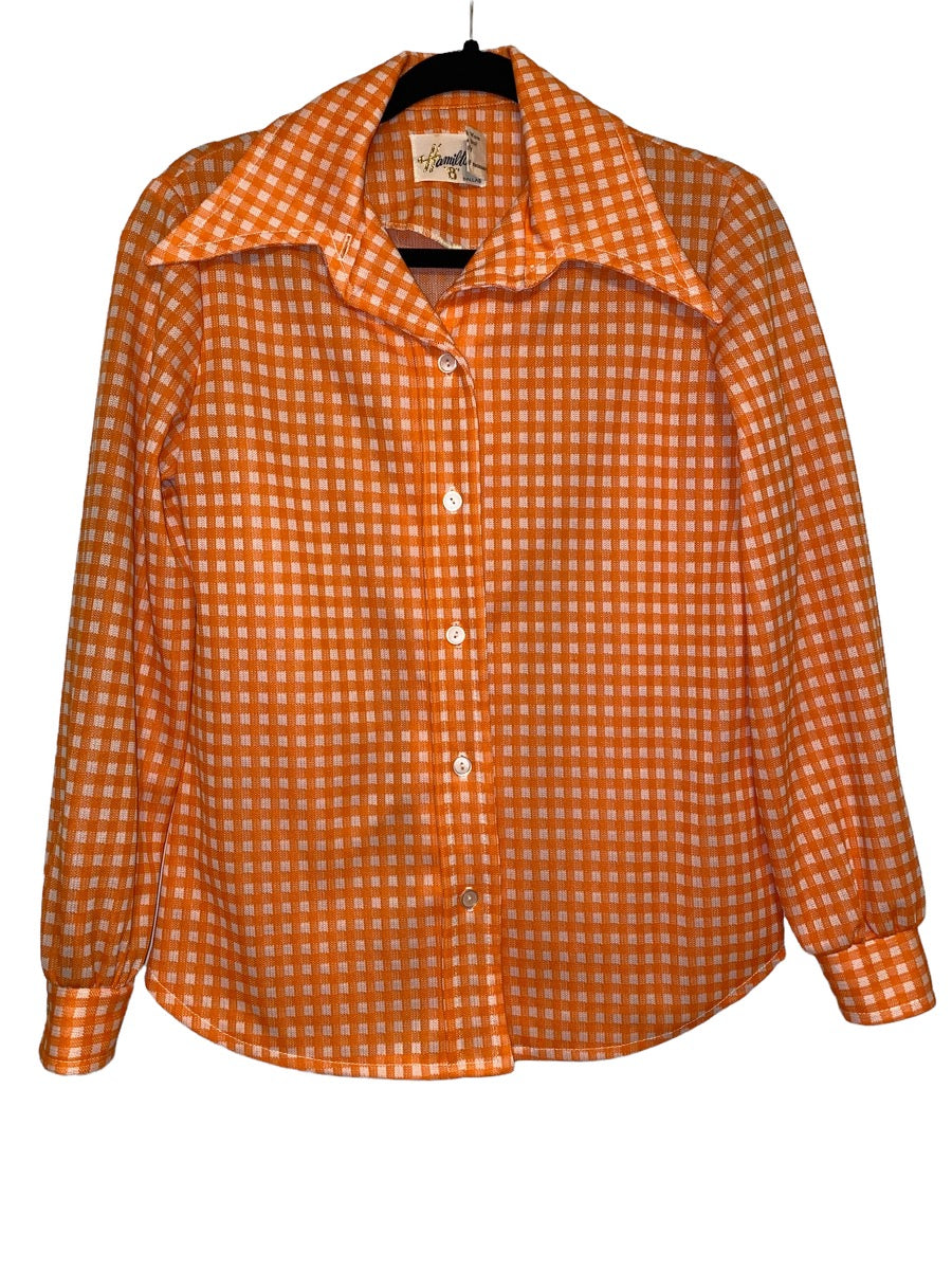 1970s Womens Wide Lapel Gingham Button Up by Hamilton 8