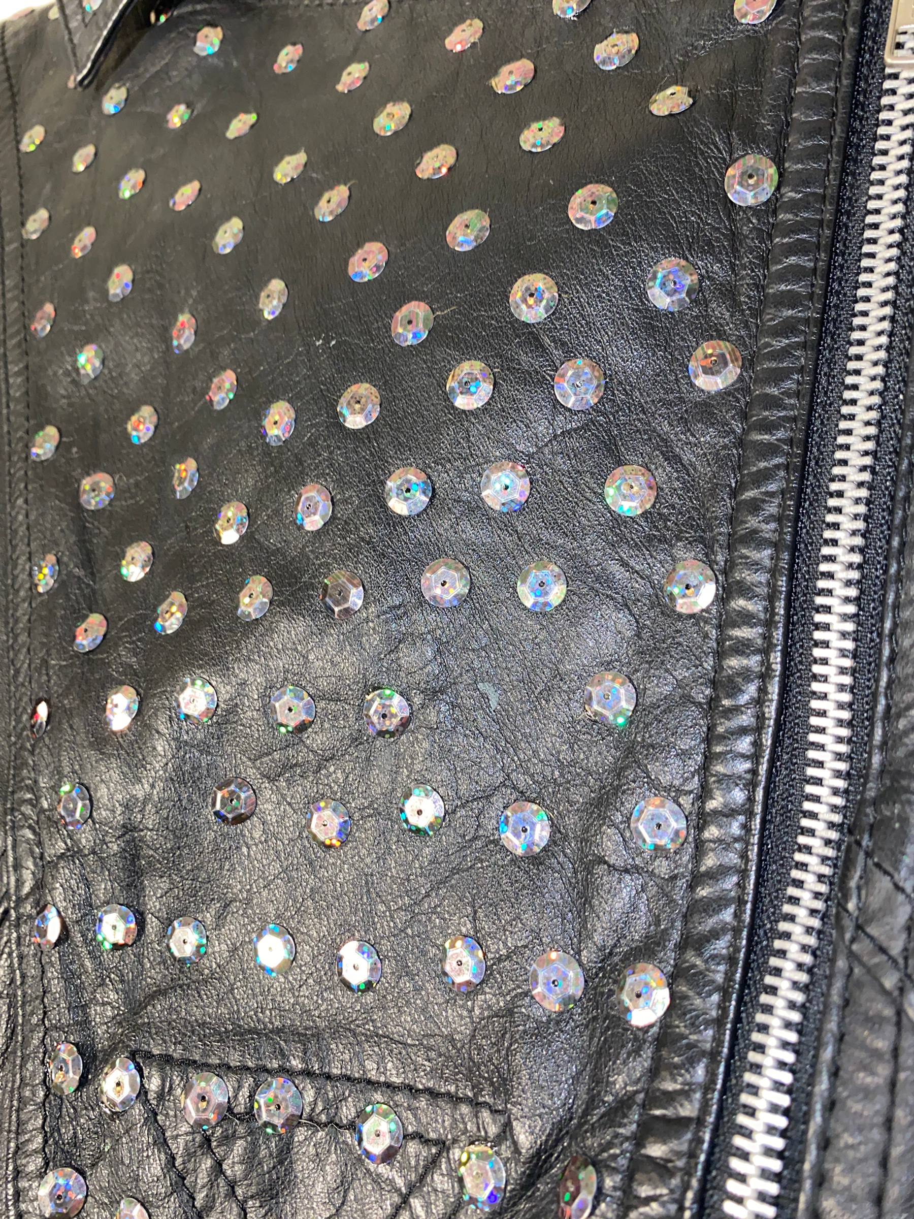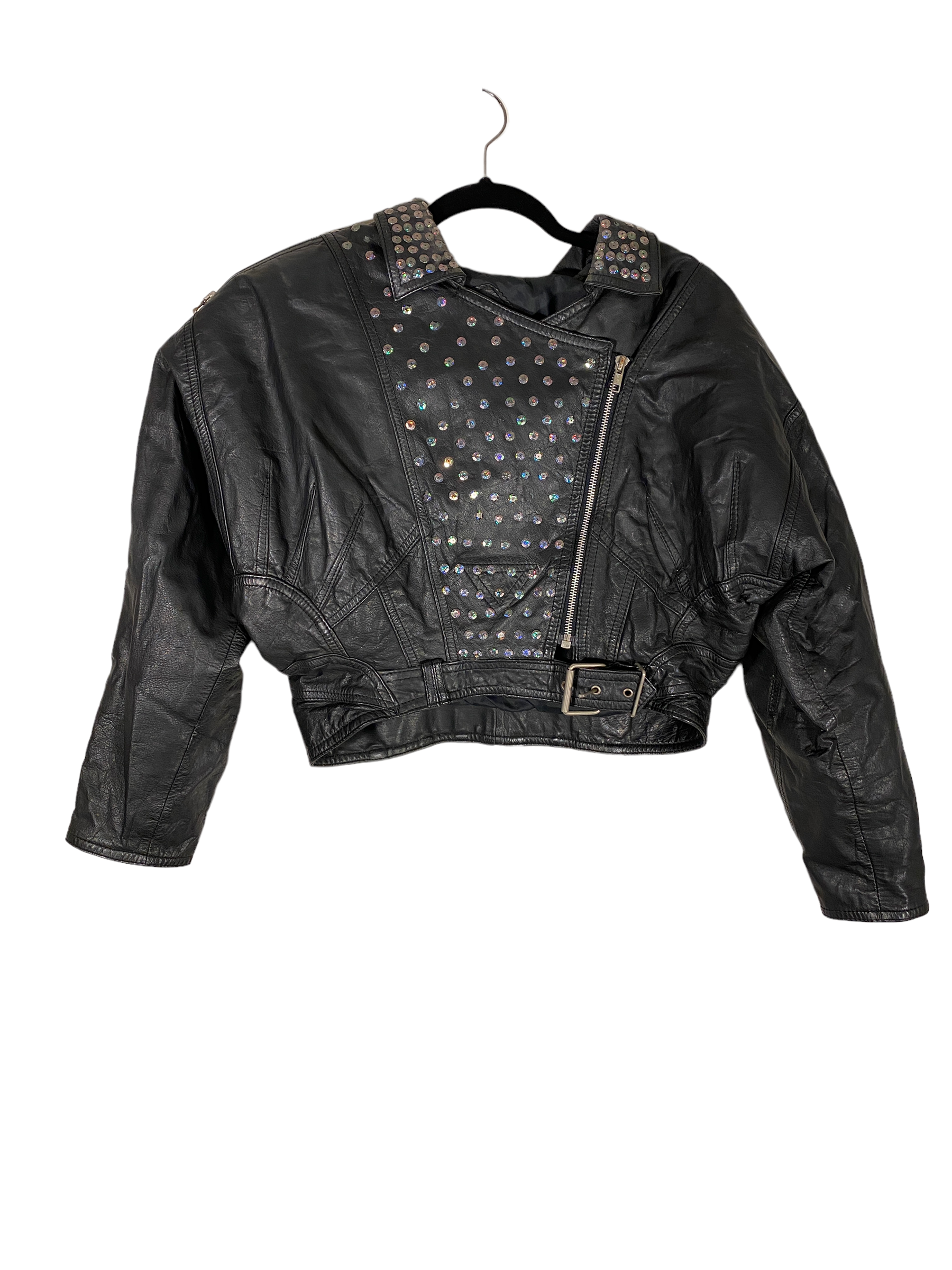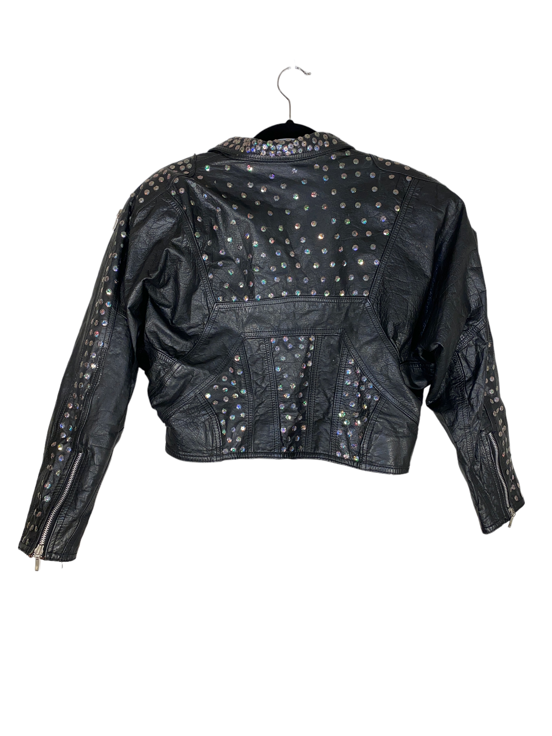 1980s Rhinestone Leather Biker Jacket