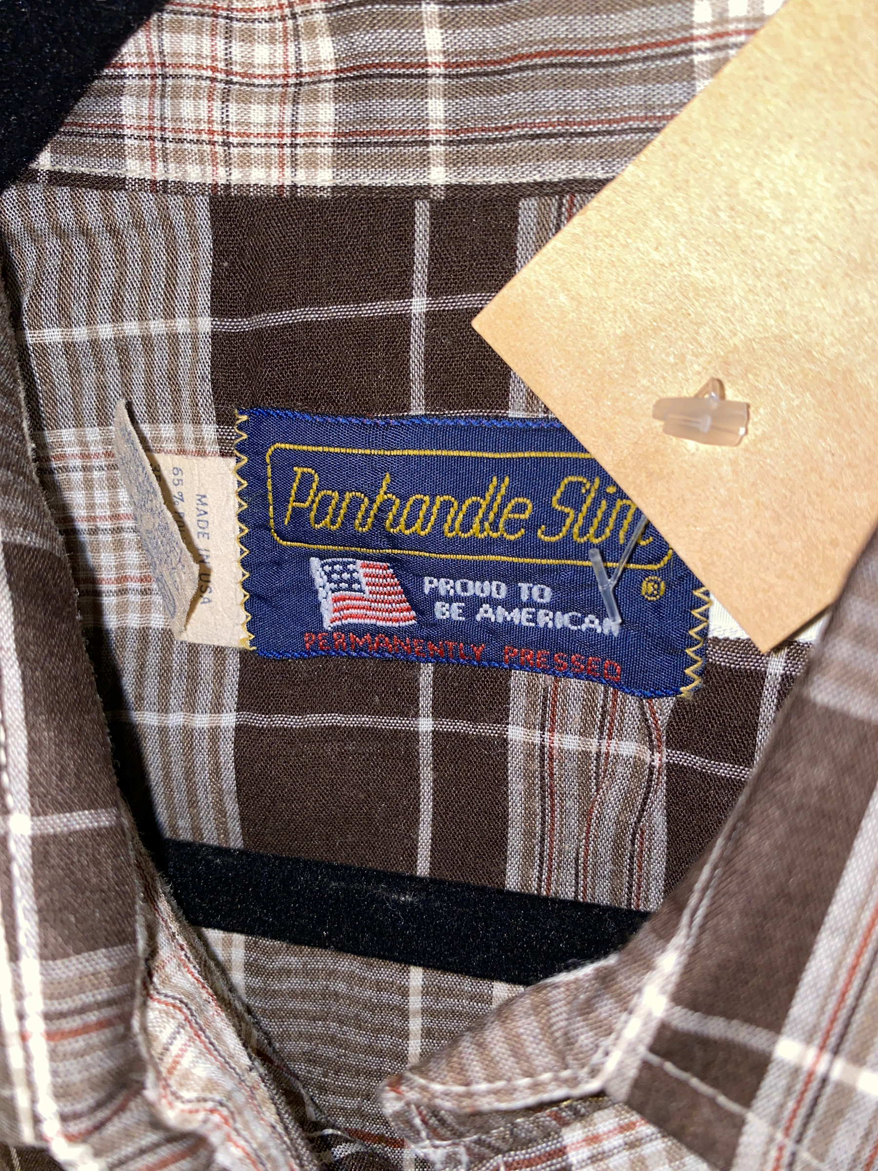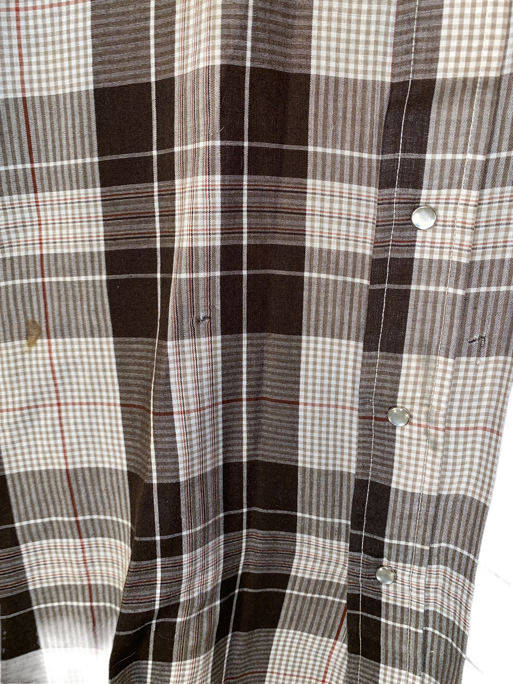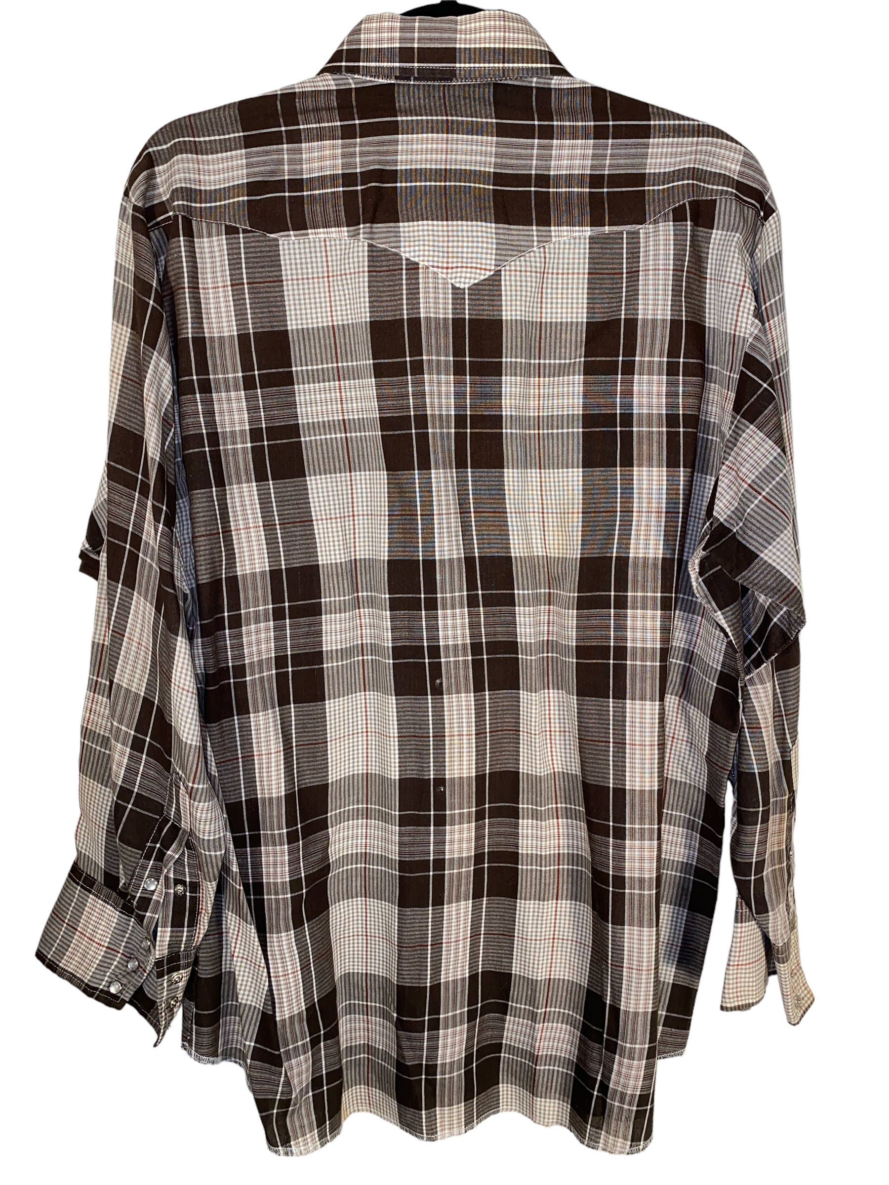 1990s Panhandle Slim Brown Plaid Pearl Snap Shirt