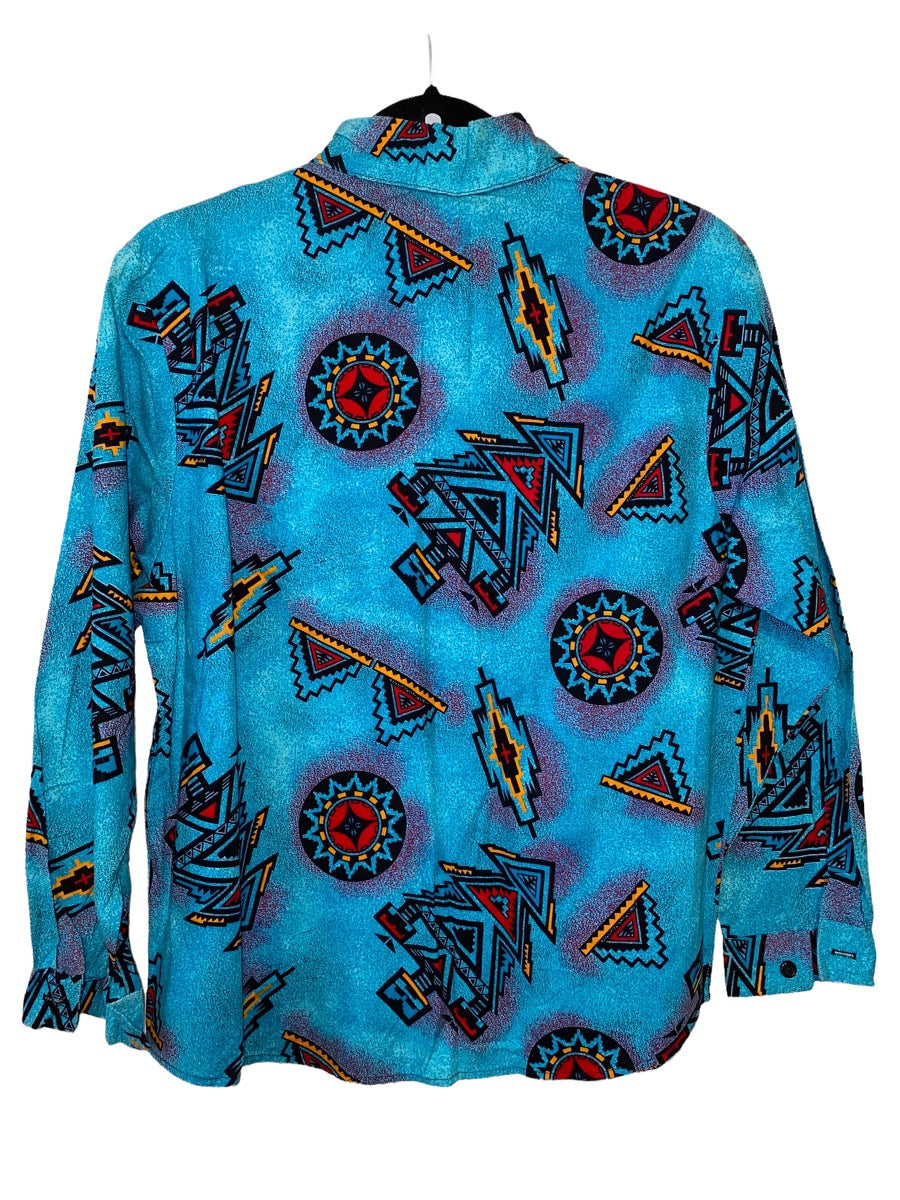 1990s Womens Western Shirt Navajo Print w Keyhole