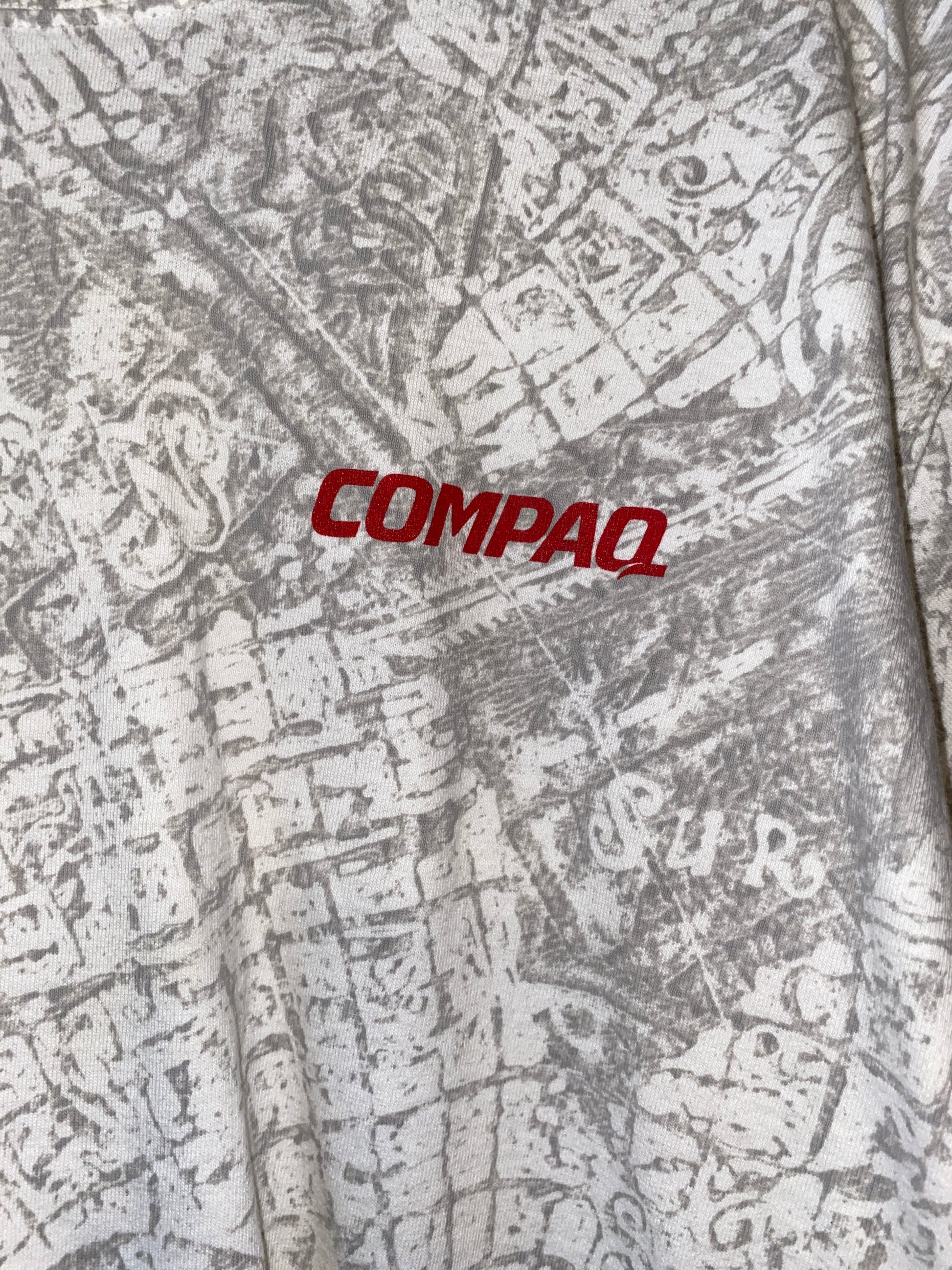 Compaq Computers All Over Print Shirt Latin Globe Script 1990s